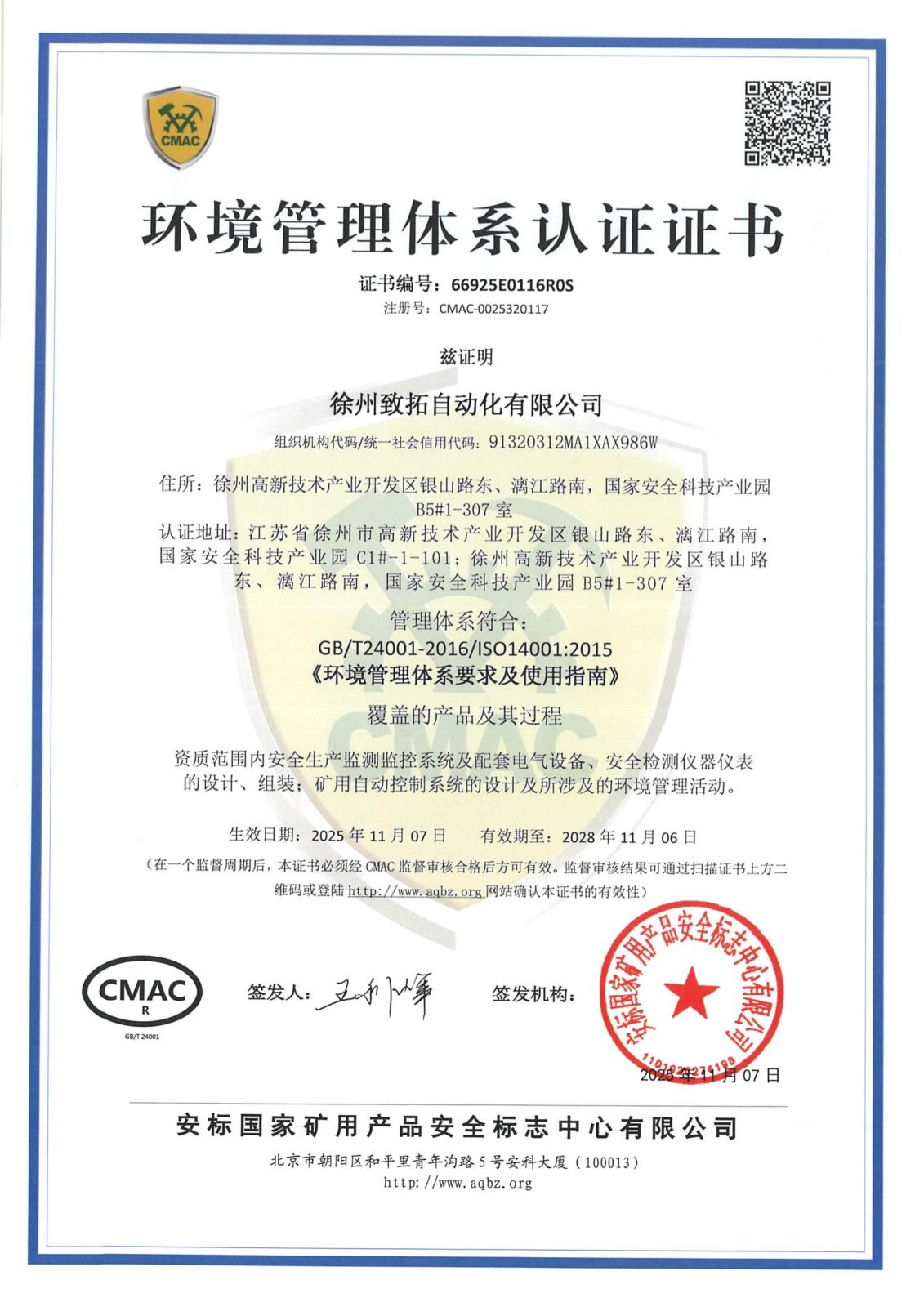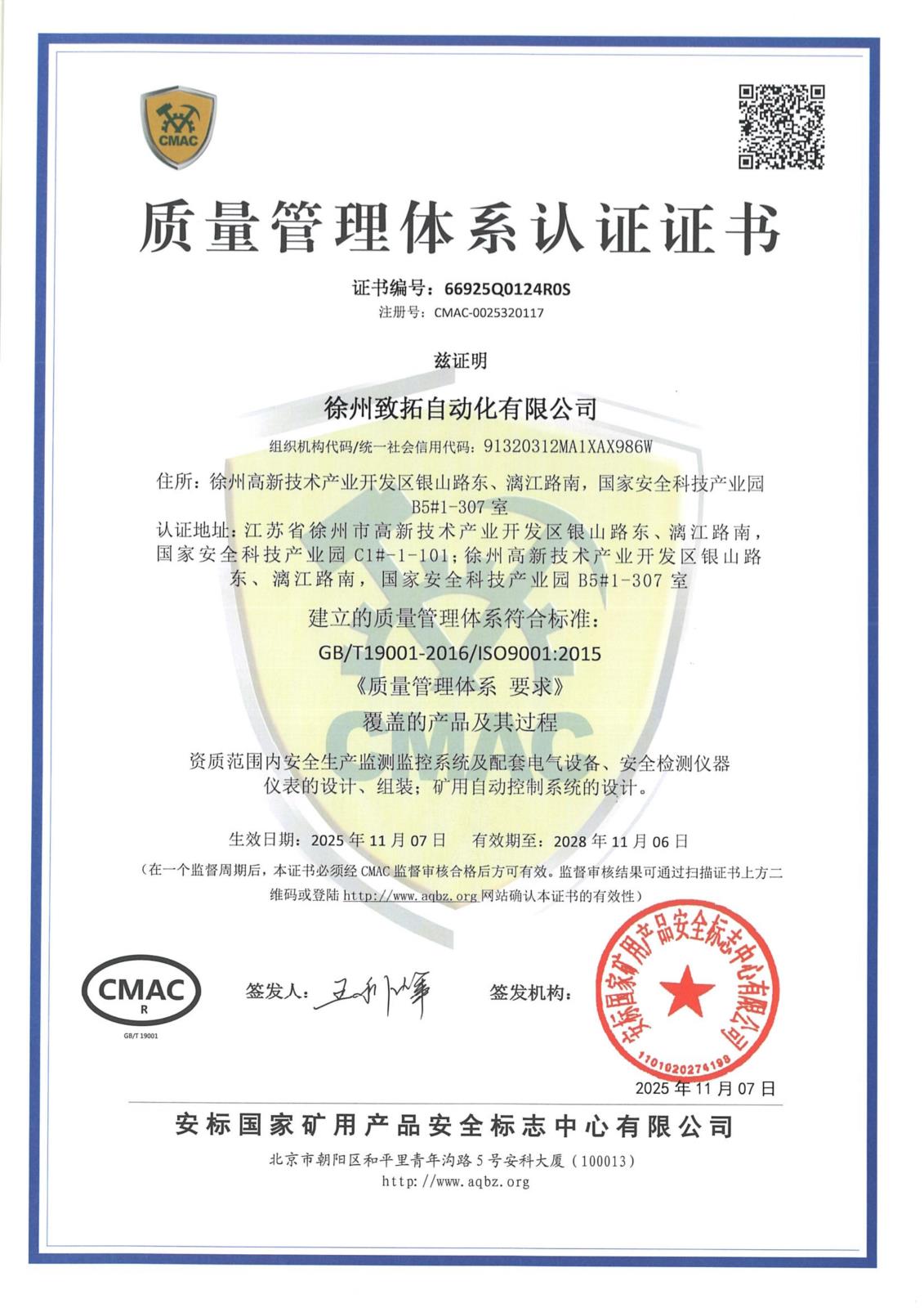 • 恭喜!致拓自動化獲得煤礦通風監測與遠程控制系統(KJ1812)安標證書